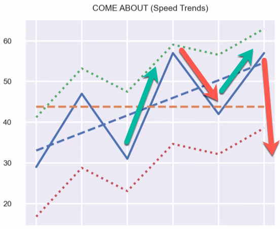 Note in trends in Speed. Look for bounces off the Bollinger Bands