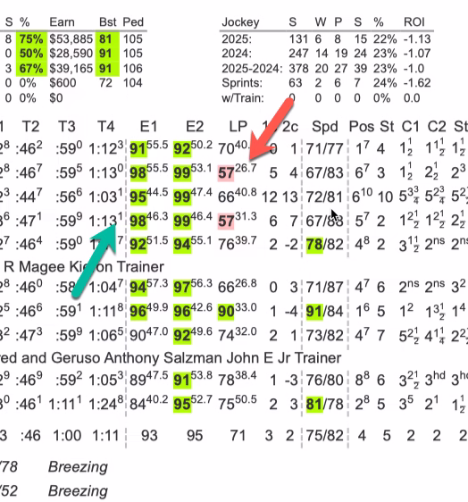 Or let Pick Pony's Past Performance sheet which automatically highlights entries for you.