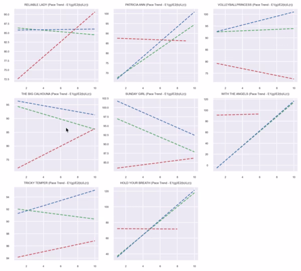 The route distance creates opportunities for closers if the pace becomes contested. Kyle’s Mom represents a stalking type, while Spirit of Esther could close from off the pace. The pace sets up moderately with several fillies showing early speed.