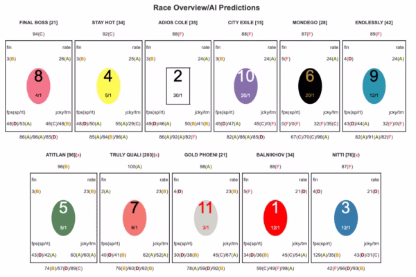 Note: This race shows the most expert disagreement. Free’s top choice Stay Hot leads consensus, while Gold Phoenix appears in both expert selections and moves to second. Free’s second choice Final Boss completes the consensus.