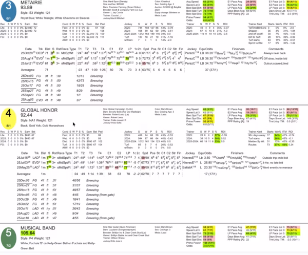 Analysis suggests Musical Band is a primary contender. With top jockey Jose L. Ortiz aboard for trainer Shane Wilson, this colt is expected to be forwardly placed and has shown enough in the past to be a major threat. Metairie, breaking from post 3 with Mitchell Murrill, is another horse that figures to be in the mix. His stalking style could be a perfect fit for the race shape.