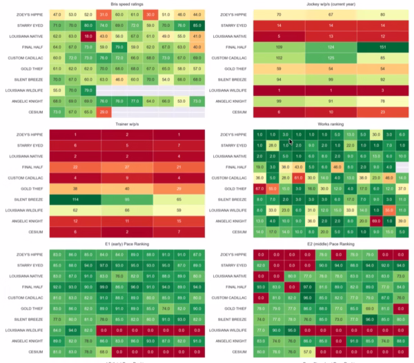 Custom Cadillac (PP5) at 6-1 for Jay Cuccia has Mitchell Murrill up, one of the leading riders at Fair Grounds. The gelding's fast-closer style could benefit from an honest pace scenario.