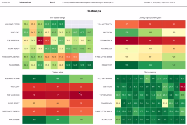 Exacta combinations should emphasize Rocketeer on top with You Ain’t Poppn and Wistucky underneath. A $5 exacta with Rocketeer over those two costs $10 and should produce a solid return. Adding a reverse $2 exacta with You Ain’t Poppn over Rocketeer provides insurance for $2.