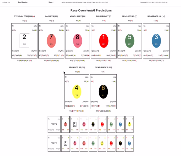 Violets Song enters for the powerful Peter Miller barn with Ricardo Gonzalez riding. Miller’s elite training operation and 24.76% win rate at Los Alamitos create immediate confidence. Gonzalez ranks among the leading riders and brings championship-caliber ability. The combination represents the strongest maiden claiming profile based solely on connections.