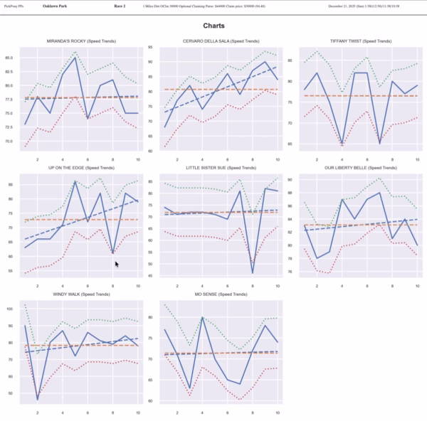 Up On the Edge for trainer David Jacobson represents a mid-level threat. The four-year-old filly shows tactical versatility with mid-pack stalking ability. Ricardo Santana Jr’s presence adds confidence, though recent form raises questions.​
