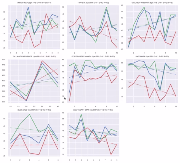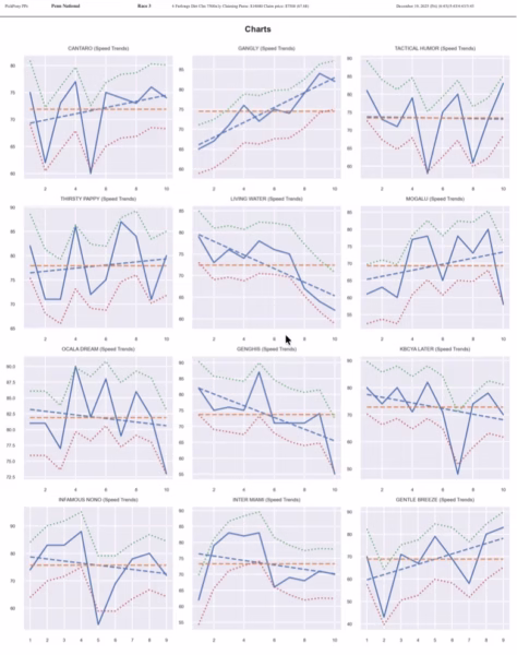 Vertical exotic wagering in the larger Race 3 presents trifecta and superfecta opportunities given the 12-horse field and likely pace scenario favoring closers. Consider boxing Gentle Breeze, Gangly, and Tactical Humor for the top three spots while adding Ocala Dream, Infamous Nono, and Thirsty Pappy for superfecta coverage.