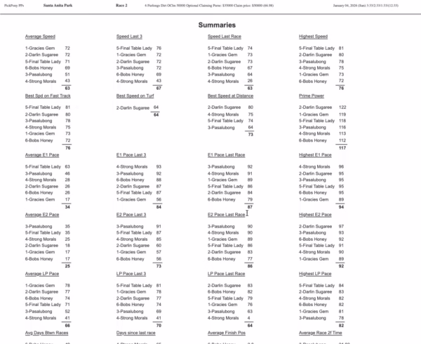 Front-running types receive significant advantages, but tactical runners positioned within two lengths maintain realistic winning chances. The six-furlong distance at Santa Anita favors horses with a combination of early speed and stamina. The short stretch limits late-running opportunities, making forward position crucial from the start.