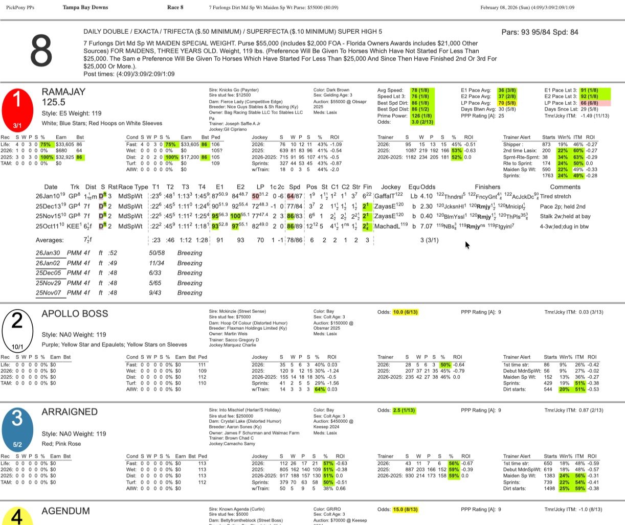 This 7-furlong sprint for 3-year-olds is loaded with quality. Arraigned and Ramajay will likely attract money. The pace should be honest.