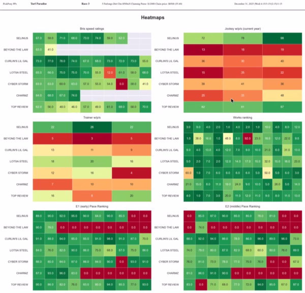 Historical bias notes for Turf Paradise suggest dirt sprints tend to reward early speed (a meaningful share of winners wire-to-wire in short dirt races), while turf routes show lower wire-to-wire rates and a greater ability for finishers to win if the pace gets pressured.